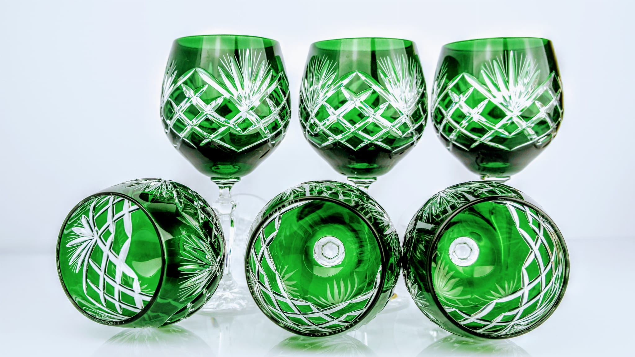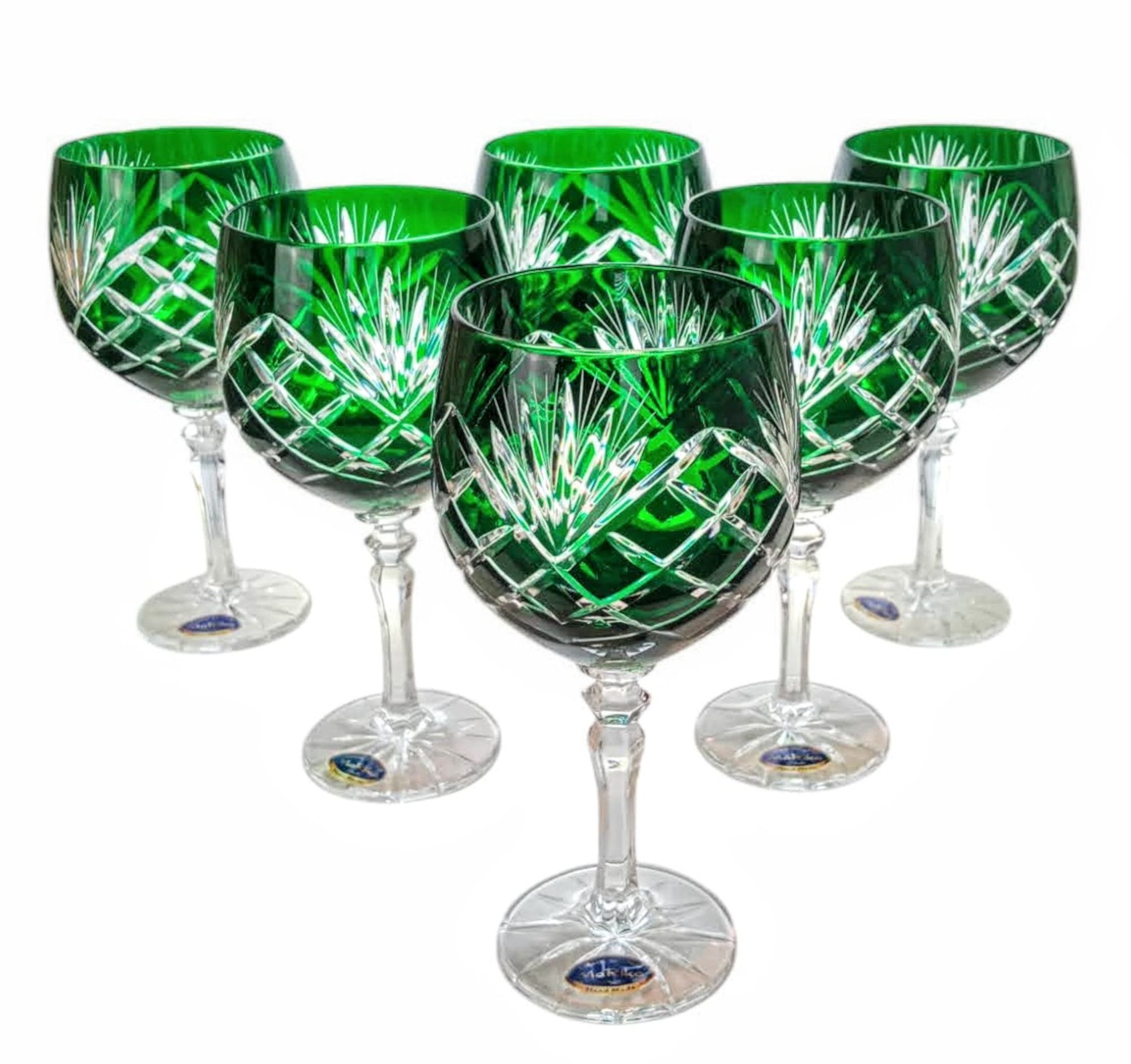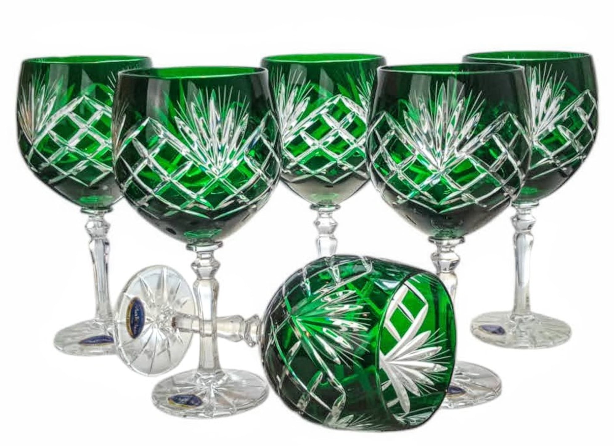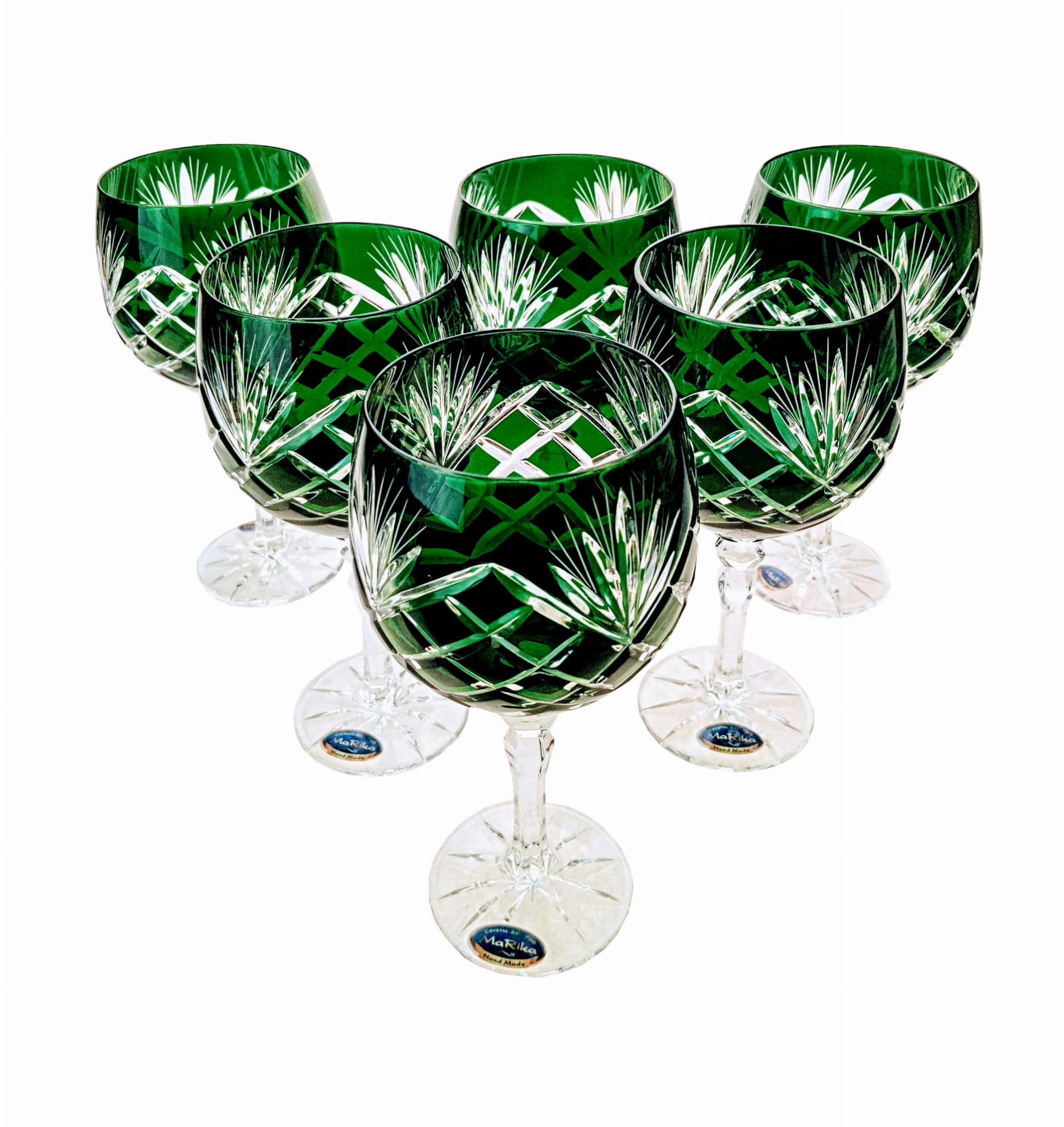 Komplet zawiera 6 sztuk kieliszków zapakowanych w ozdobne opakowanie wyłożone białym materiałem. Pojemność: 280 ml Wysokość: 18,5 cm Wzór: Ananas Kolor:Rubin