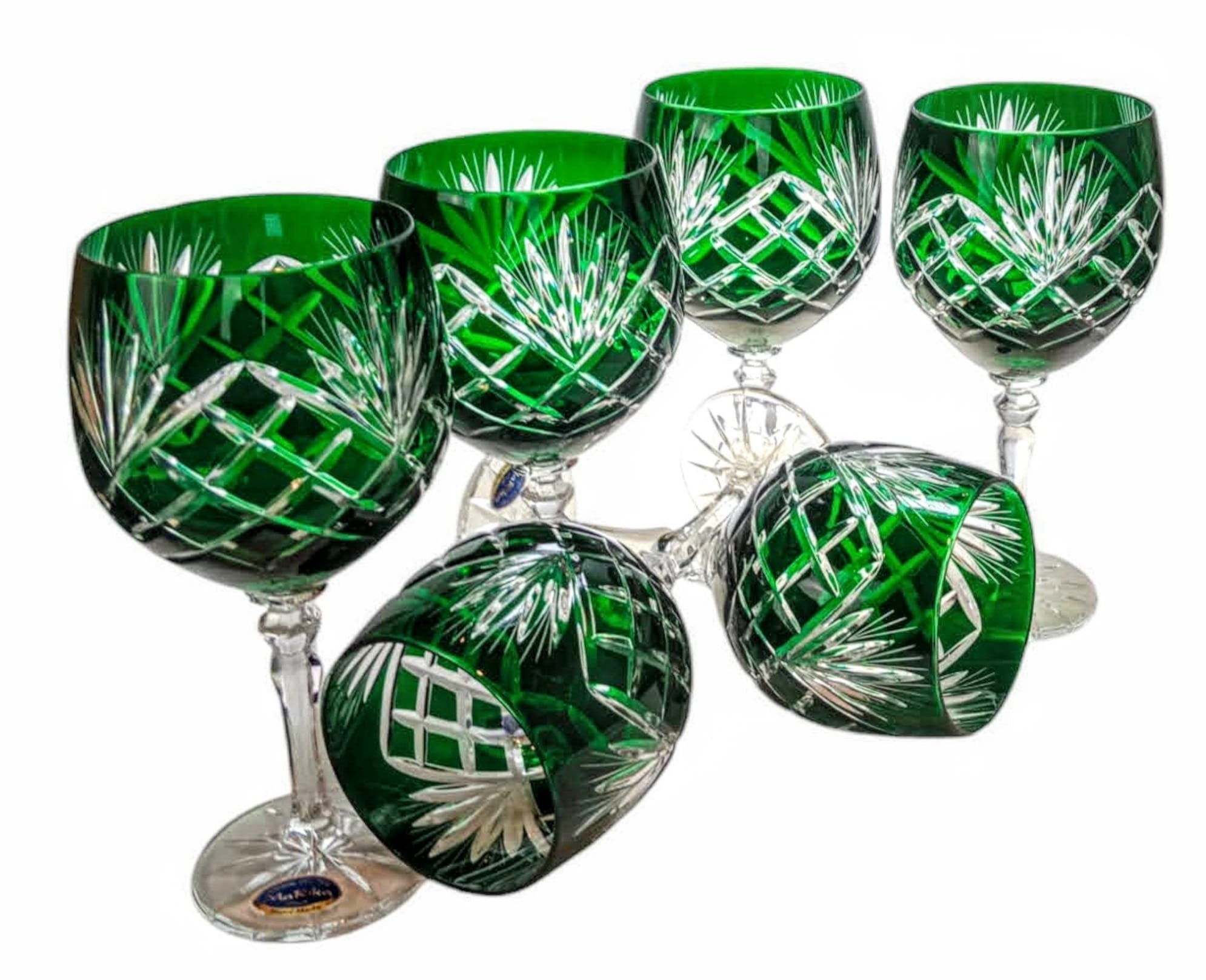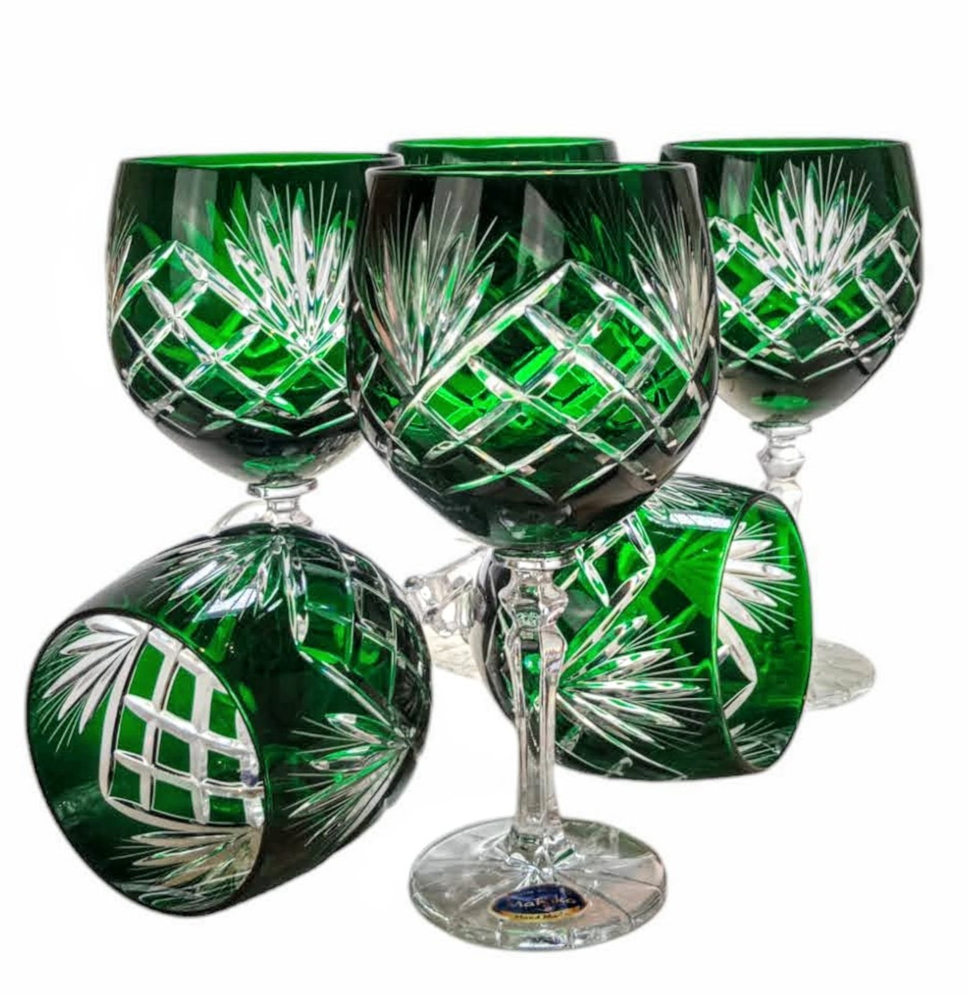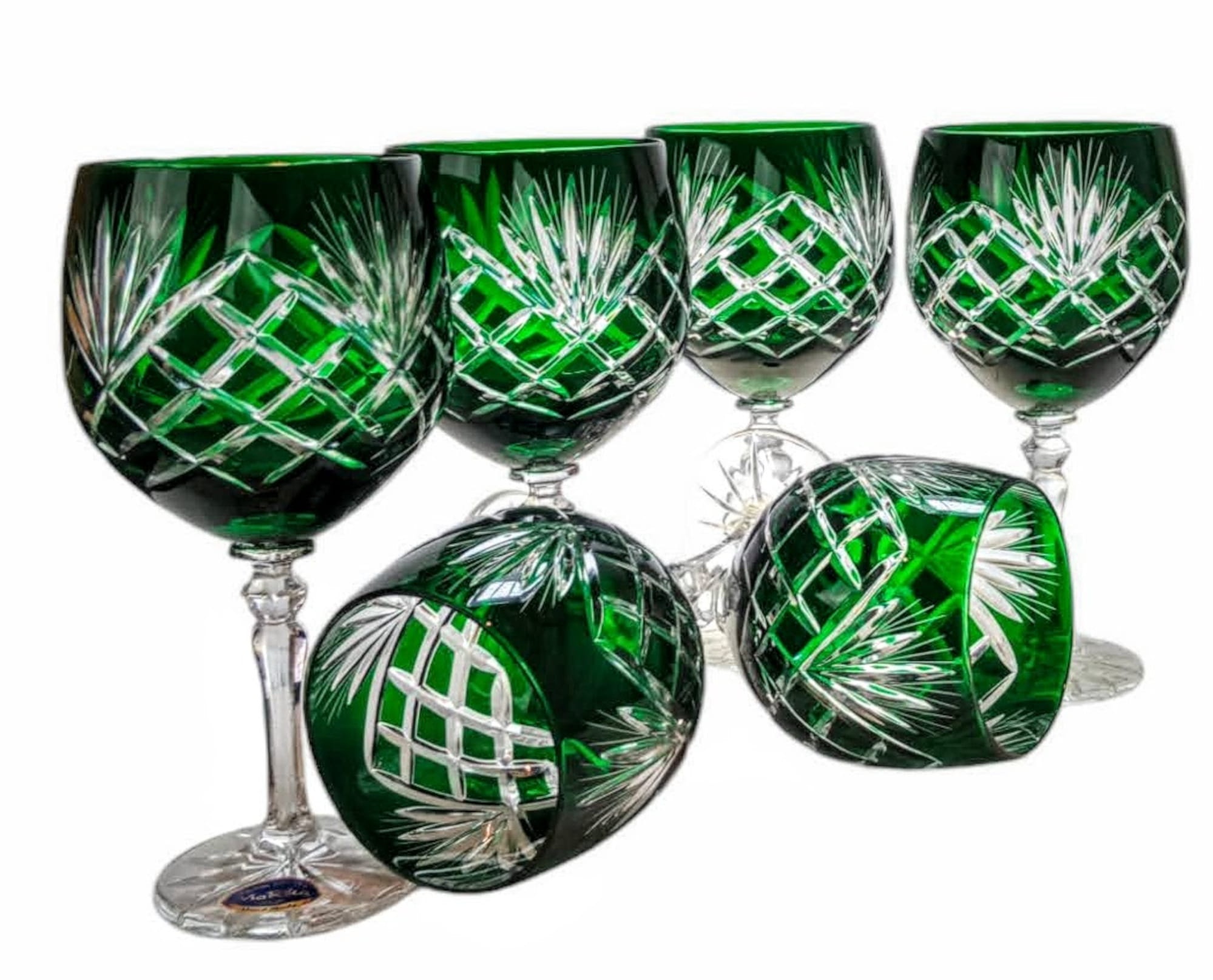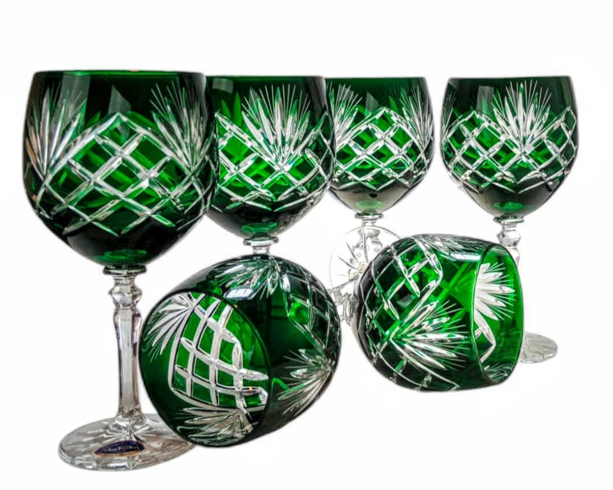 Komplet zawiera 6 sztuk kieliszków zapakowanych w ozdobne opakowanie wyłożone białym materiałem. Pojemność: 280 ml Wysokość: 18,5 cm Wzór: Ananas Kolor:Rubin