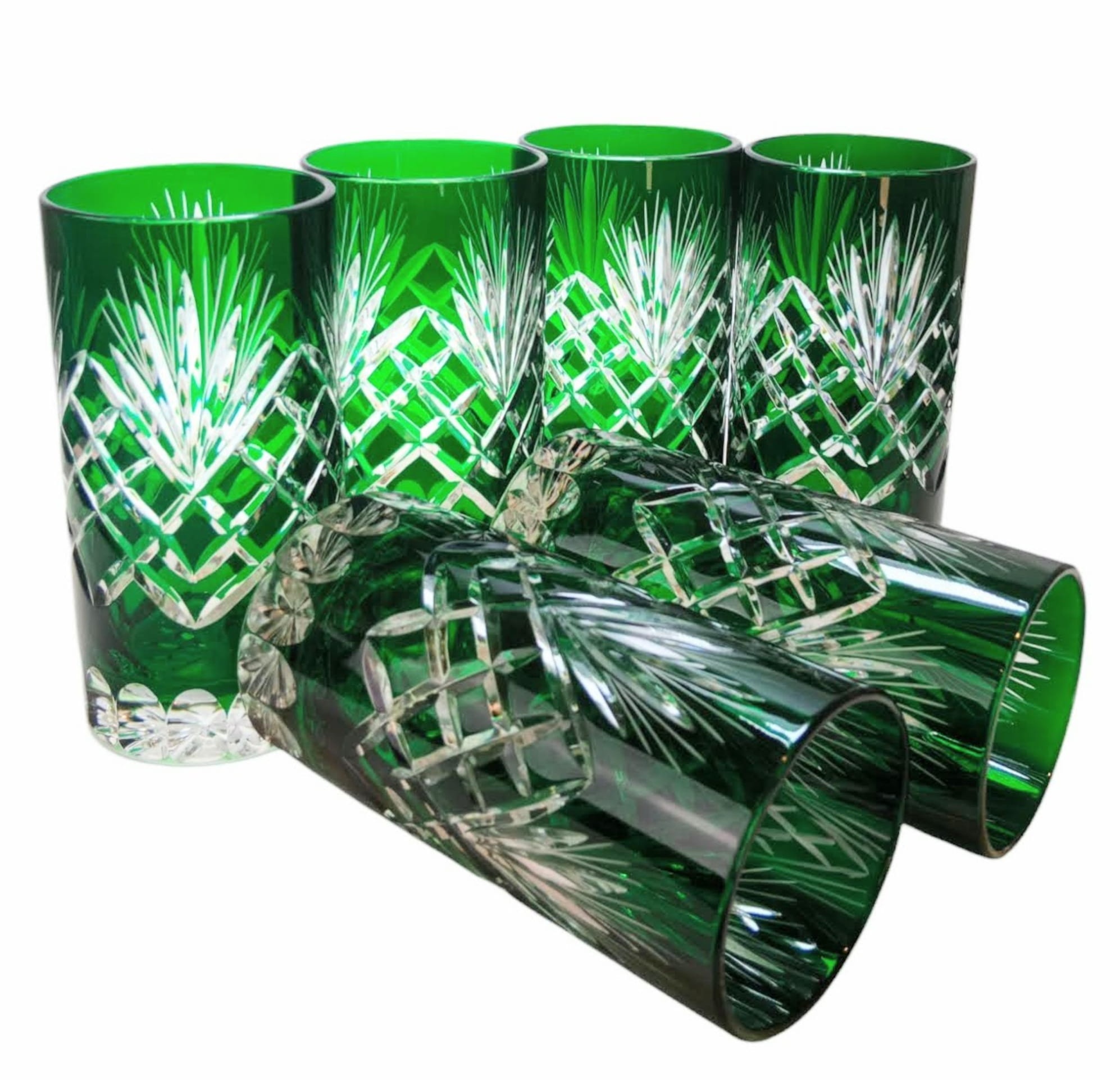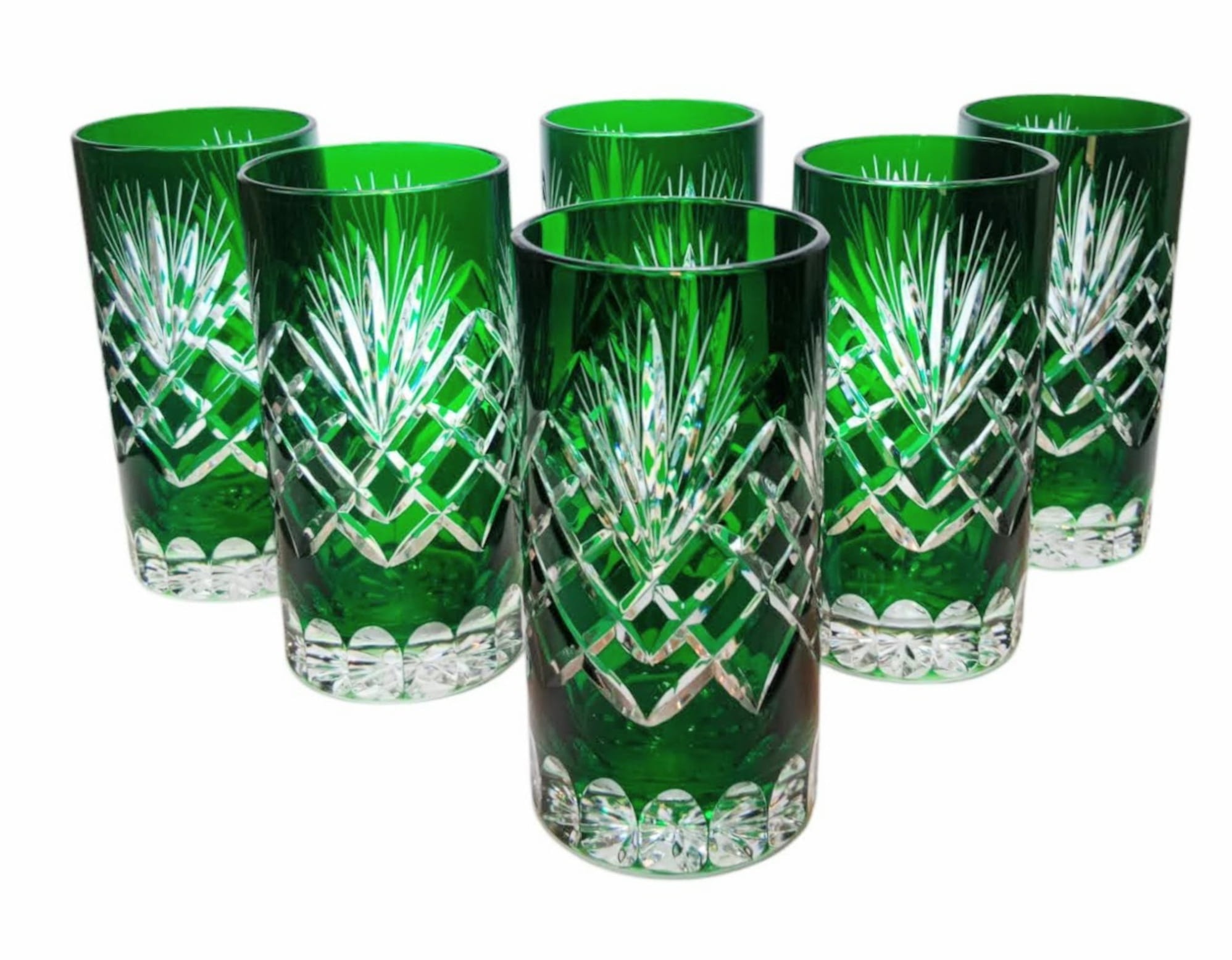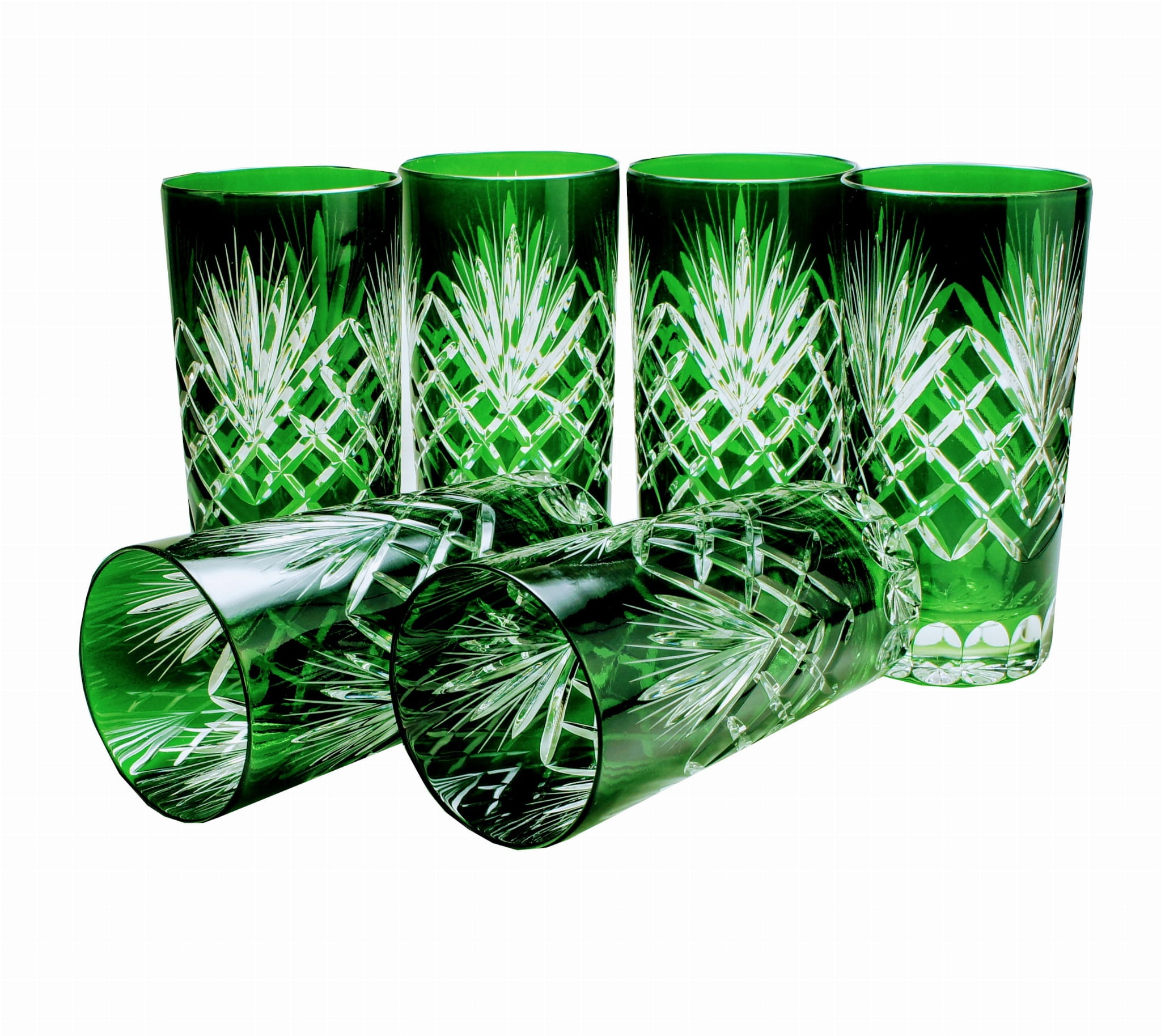 Szmaragdowe kryształowe szklanki do wody i drinków 320ml Ananas 6 sztuk