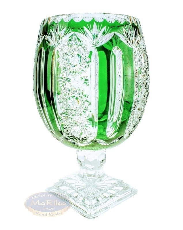 Szmaragdowy kryształowy wazon na nodze Praha