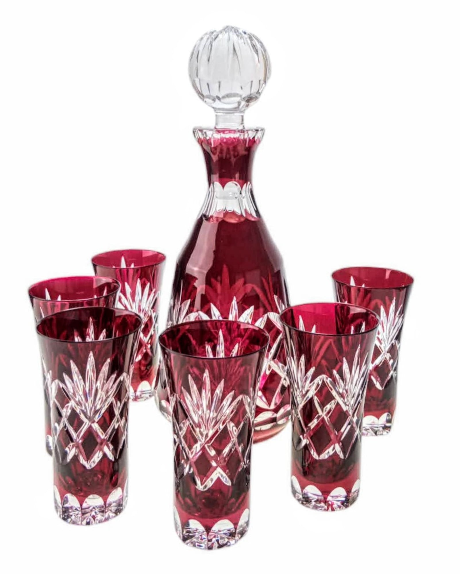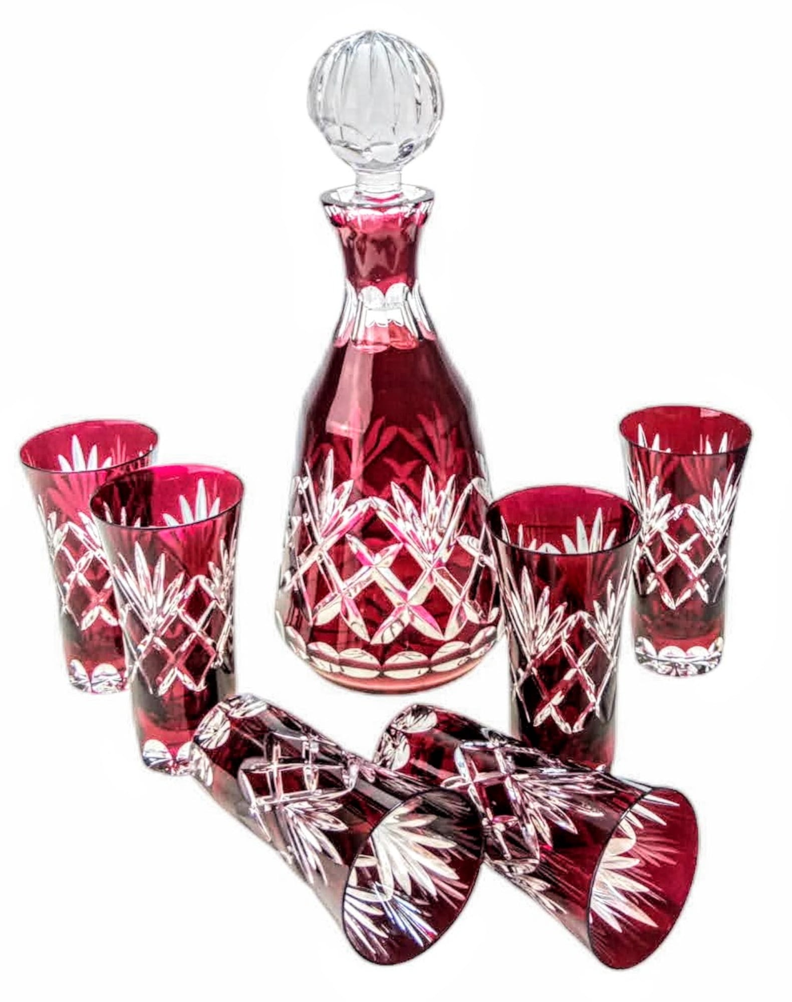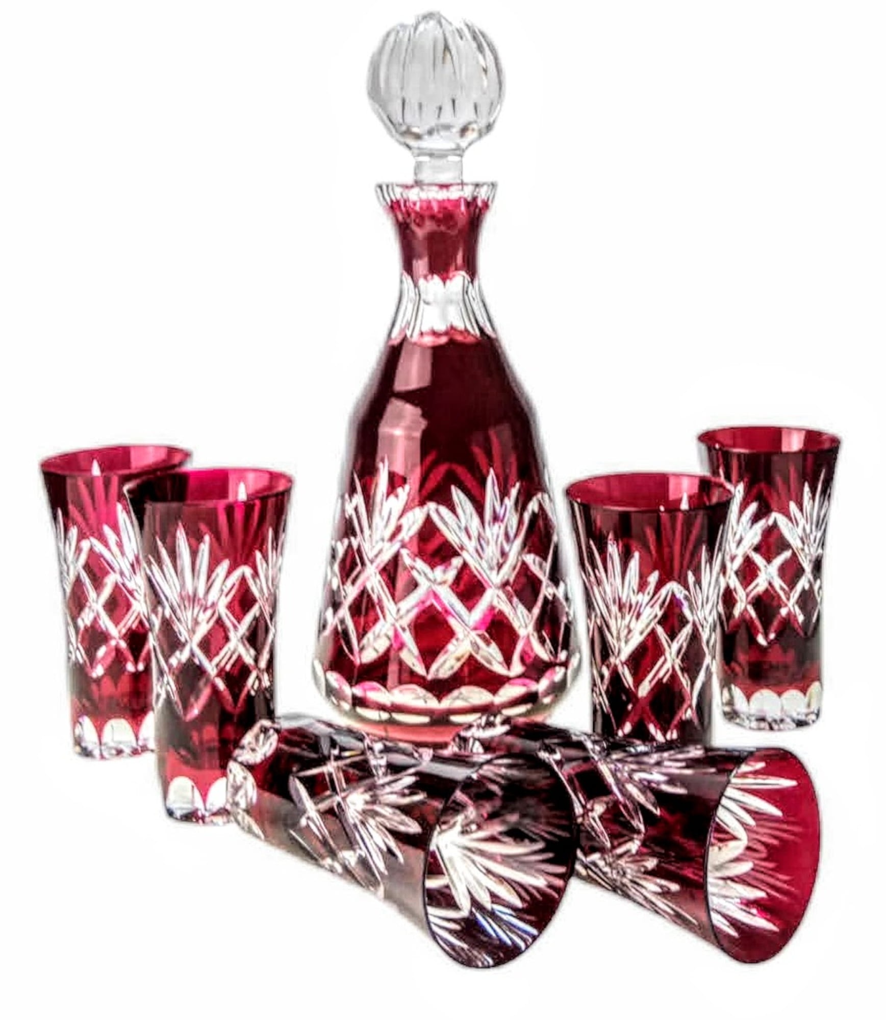 Odkryj nasz rubinowy kryształowy zestaw do wódki ananasowej, który łączy w sobie elegancję i wyjątkowy design. Wykonany z wysokiej jakości ręcznie zdobionego kryształu, zestaw ten zadowoli nawet najbardziej wymagających koneserów. Jego ponadczasowy urok sprawia, że idealnie nadaje się na każdą specjalną okazję, od rodzinnych spotkań po eleganckie przyjęcia. W skład zestawu wchodzi sześć szklanek (o pojemności 30 ml) oraz elegancka karafka (o pojemności 400 ml), ozdobiona oryginalnym motywem ananasa. Rubinowy kolor dodaje odrobiny luksusu, czyniąc ten zestaw idealnym prezentem dla bliskich lub wyjątkowym dodatkiem do Twojego stołu. Ciesz się każdym łykiem wódki podanej w tak wyrafinowanym stylu i otwórz drzwi do świata elegancji i artystycznego kunsztu.